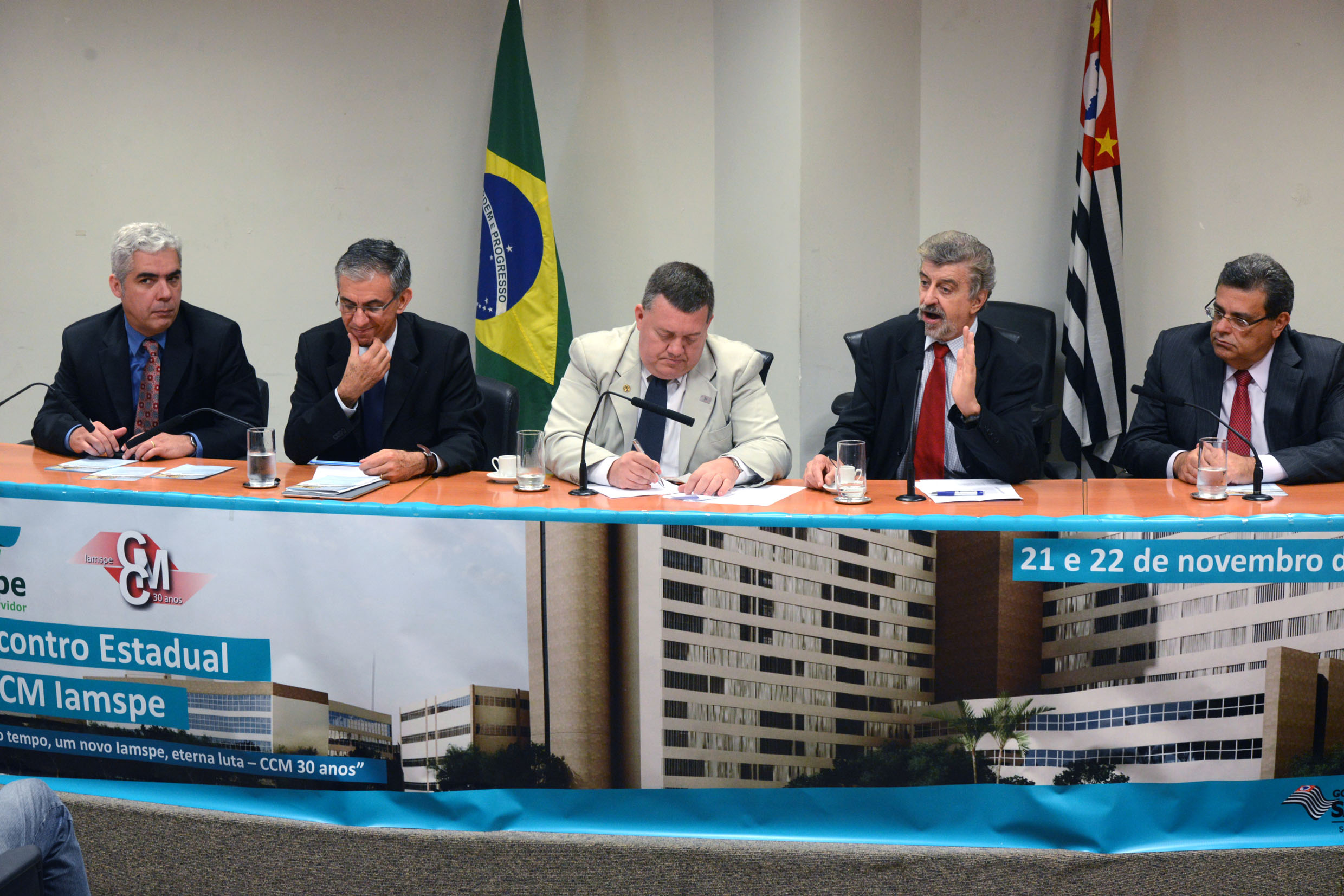 A Comissão Consultiva Mista (CCM) do Instituto de Assistência Médica ao Servidor Público Estadual (Iamspe) se reuniu nesta quinta-feira, 21/11, para celebrar os 30 anos da instituição. No encontro, foram discutidas as demandas para ampliação de instalações do instituto e melhoria no atendimento aos funcionários estaduais de São Paulo. O secretário de Gestão Pública, Davi Zaia, participou das discussões junto com o superintendente do Iamspe, Latif Abrahão Jr., do presidente da CCM Iamspe, Sylvio Micelli, do deputado Marcos Martins (PT) e do diretor do Hospital do Servidor Público Roberto Dantas Queiroz.